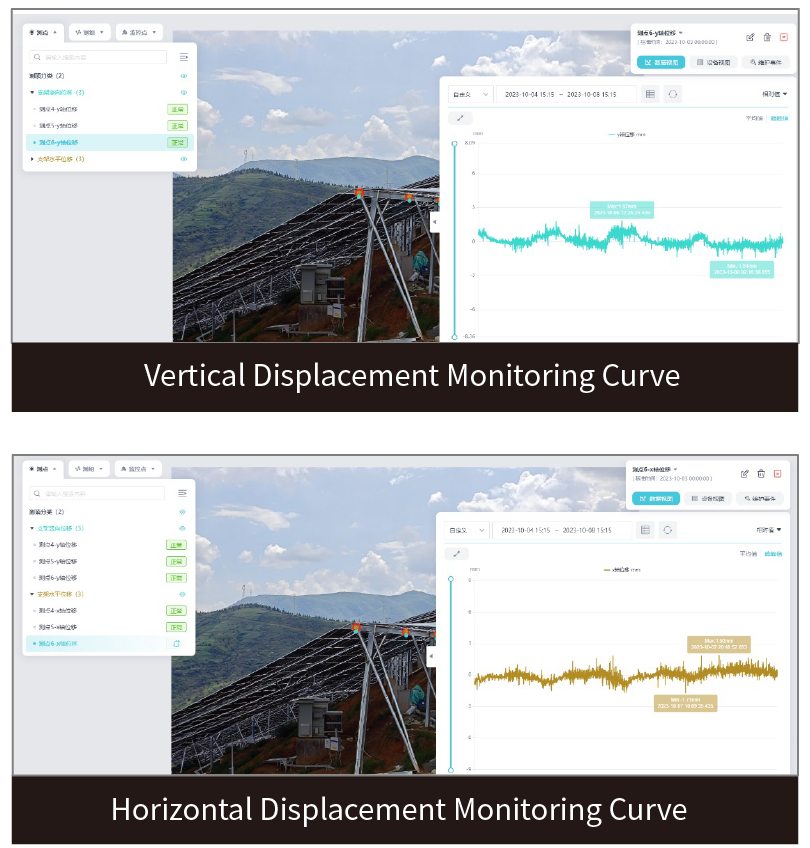 Since the equipment has been in operation, the monitoring data has remained stable. Both the vertical displacement and horizontal displacement values are within ±2mm, and the flexible support structure is in an overall stable state.