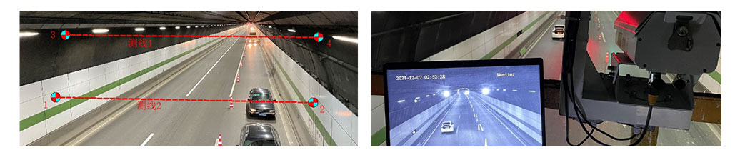 The project uses intelligent vision gauge to conduct real-time monitoring of the tunnel structure. One measuring instrument is installed at the mid-span vault of the tunnel, and 4 targets are installed symmetrically on both sides to form two measurement lines for convergence monitoring.