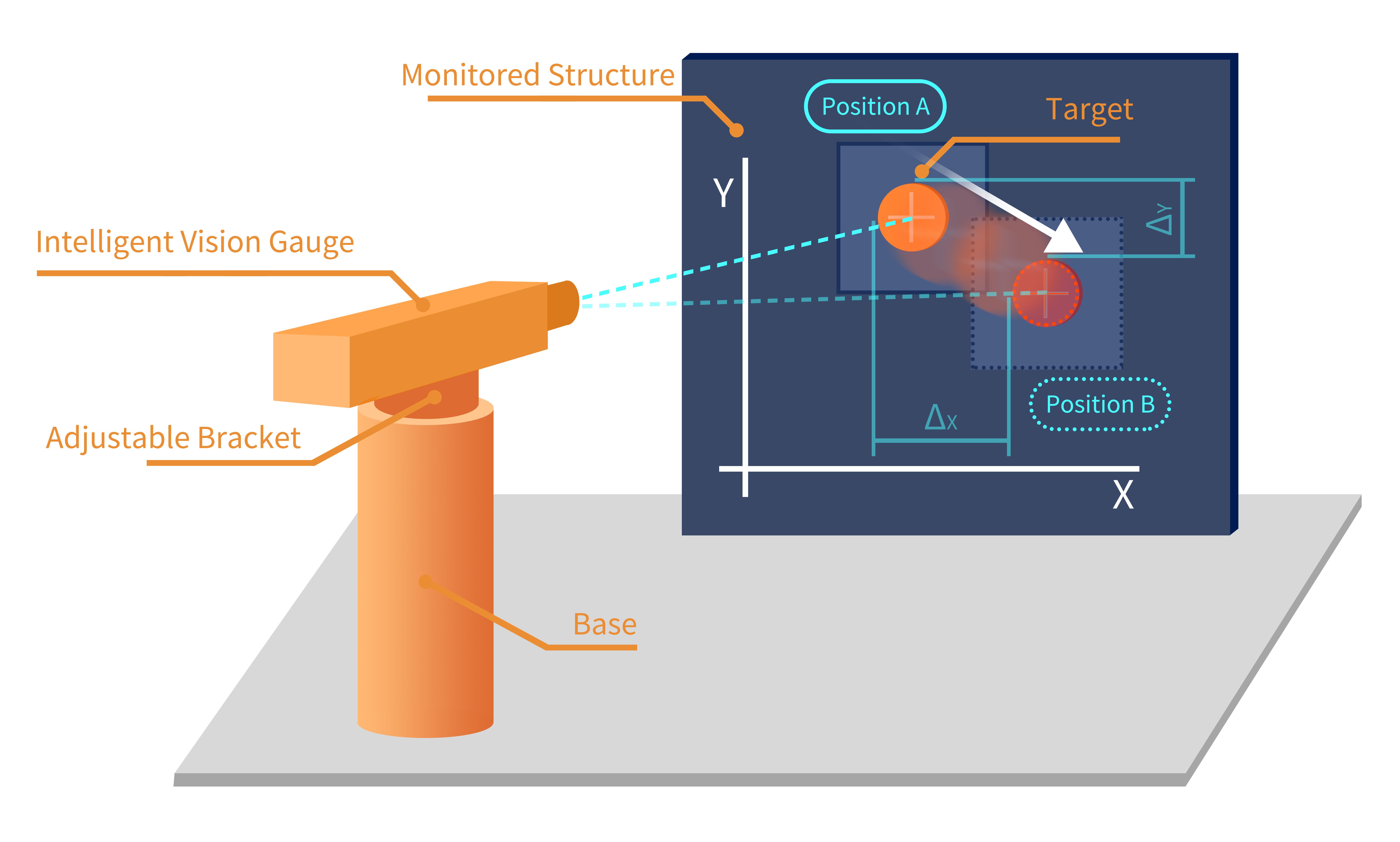 Targets are installed on the structure to be measured, and the intelligent vision gauge is installed at a stable position relative to the structure. The gauge can identify the targets on the structure, and when the structure experiences planar displacement, the coordinates of the targets change accordingly, measuring the horizontal and vertical displacements of the structure.