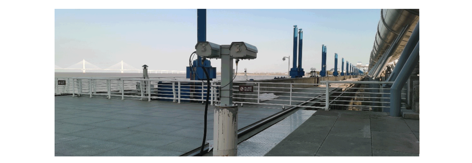 The sluice gate is the largest inland river mouth gate in China and is located in an area with complex hydrogeological conditions, particularly affected by tides. It requires real-time and precise measurement of the gate's deformation. To ensure the safety of the gate, several intelligent vision gauges are used to simultaneously monitor the horizontal and vertical displacements of the gate.