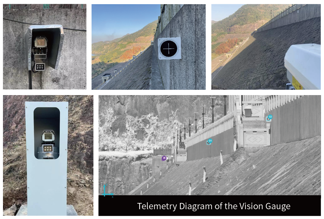 The Intelligent Vision Gauge System is a smart system based on machine vision measurement technology, combined with IoT and intelligent disaster recognition algorithms. It utilizes non-contact measurement and achieves sub-pixel measurement accuracy of structural deformation in water conservancy infrastructure through digital image correlation technology. This system addresses issues such as high investment costs and delayed data in existing dam deformation monitoring technologies, the inability to monitor real-time displacement of dam bodies, and the inability to meet the accuracy requirements of reservoir dam monitoring standards.